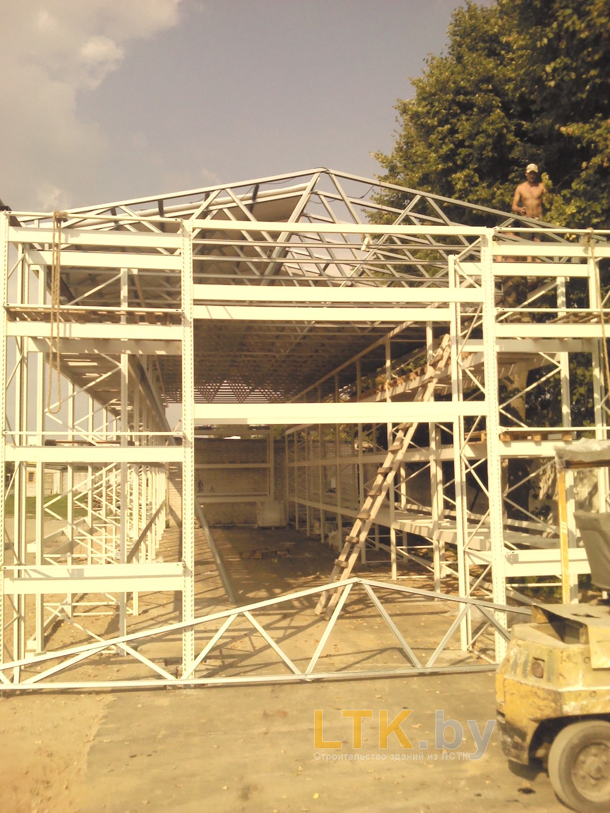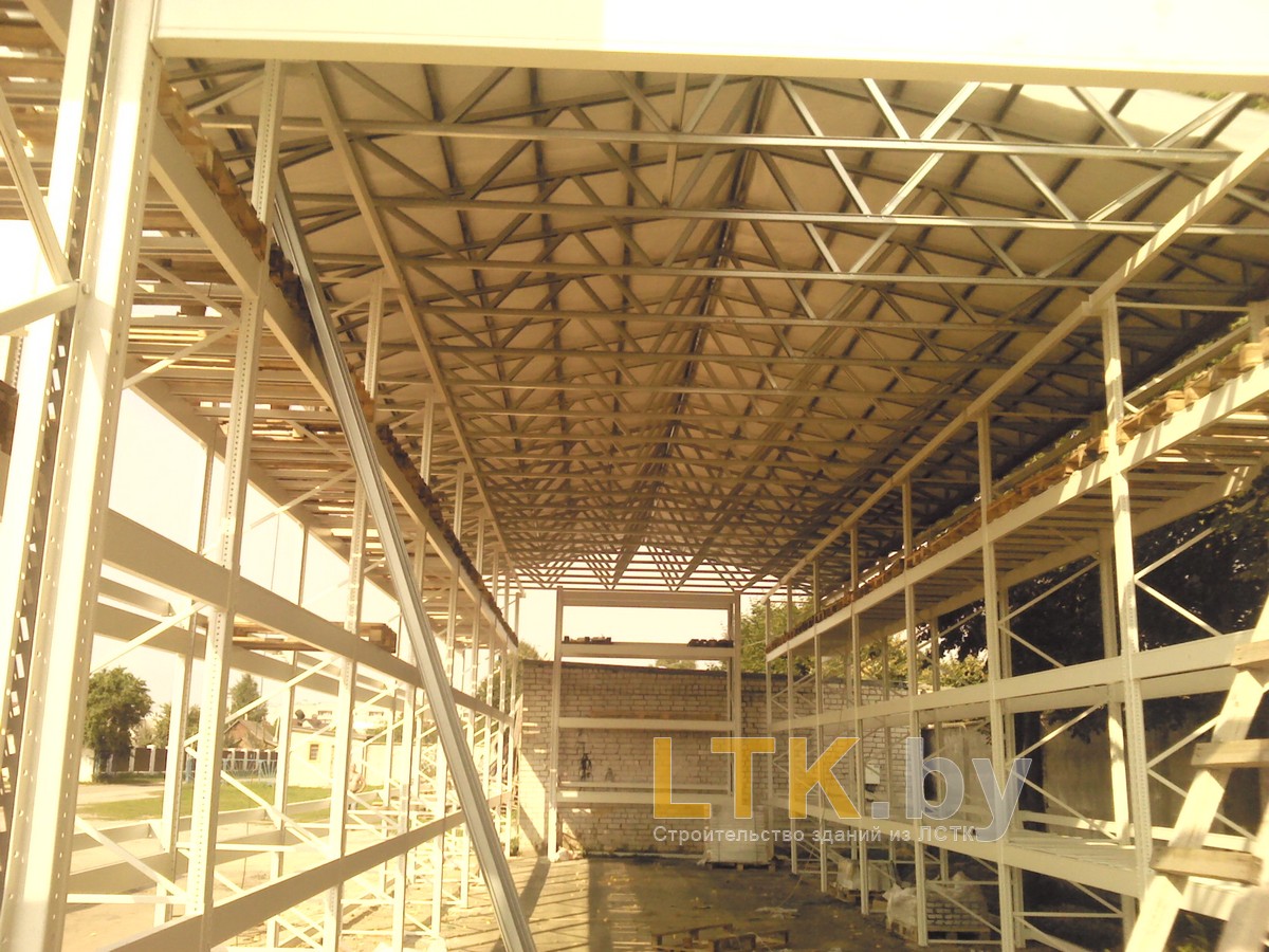 Монтаж кровельной системы из ЛСТК для складских стеллажей