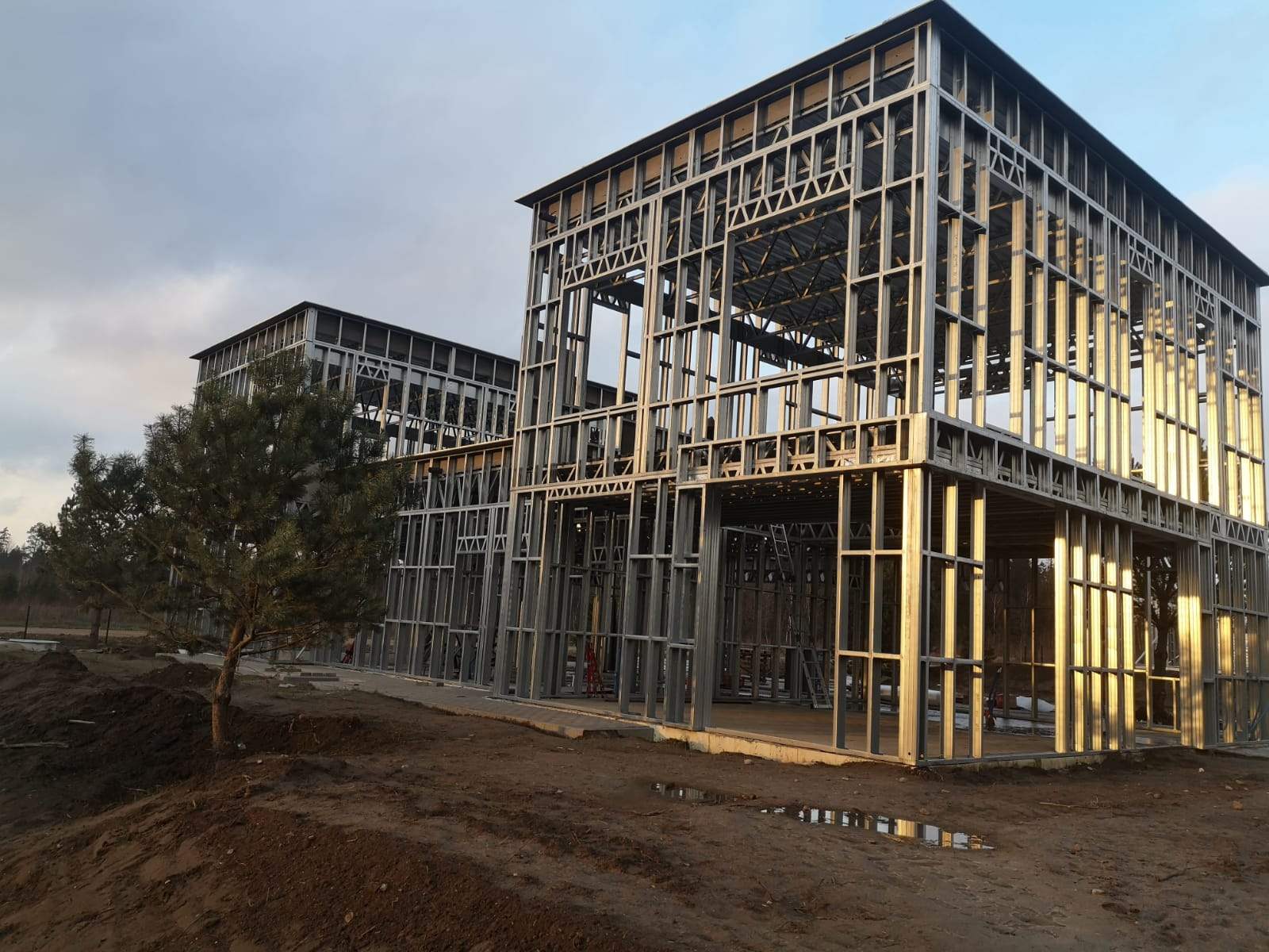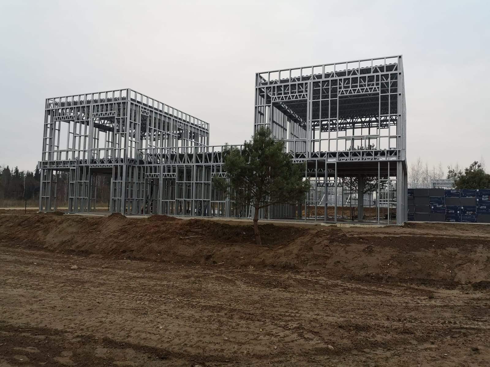 Жилой дом на две семьи с гаражом построен в окрестностях Вильнюса в составе комплексной застройки.