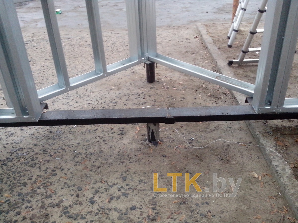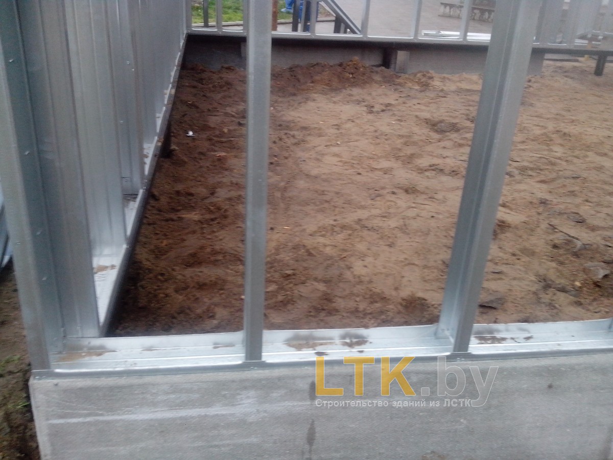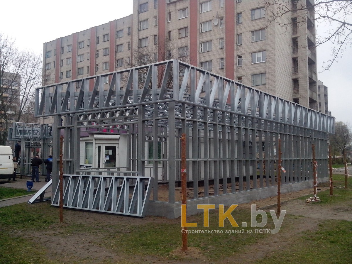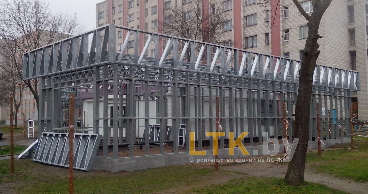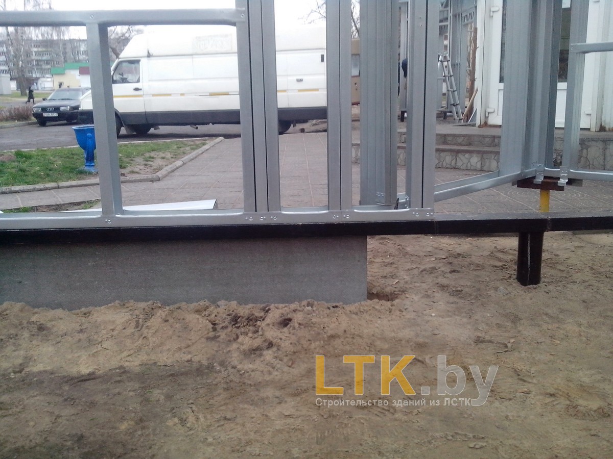 Фотоотчет о строительстве мини-магазина «777» из ЛСТК. В качестве фундамента используются винтовые сваи с обвязкой из стального швеллера.