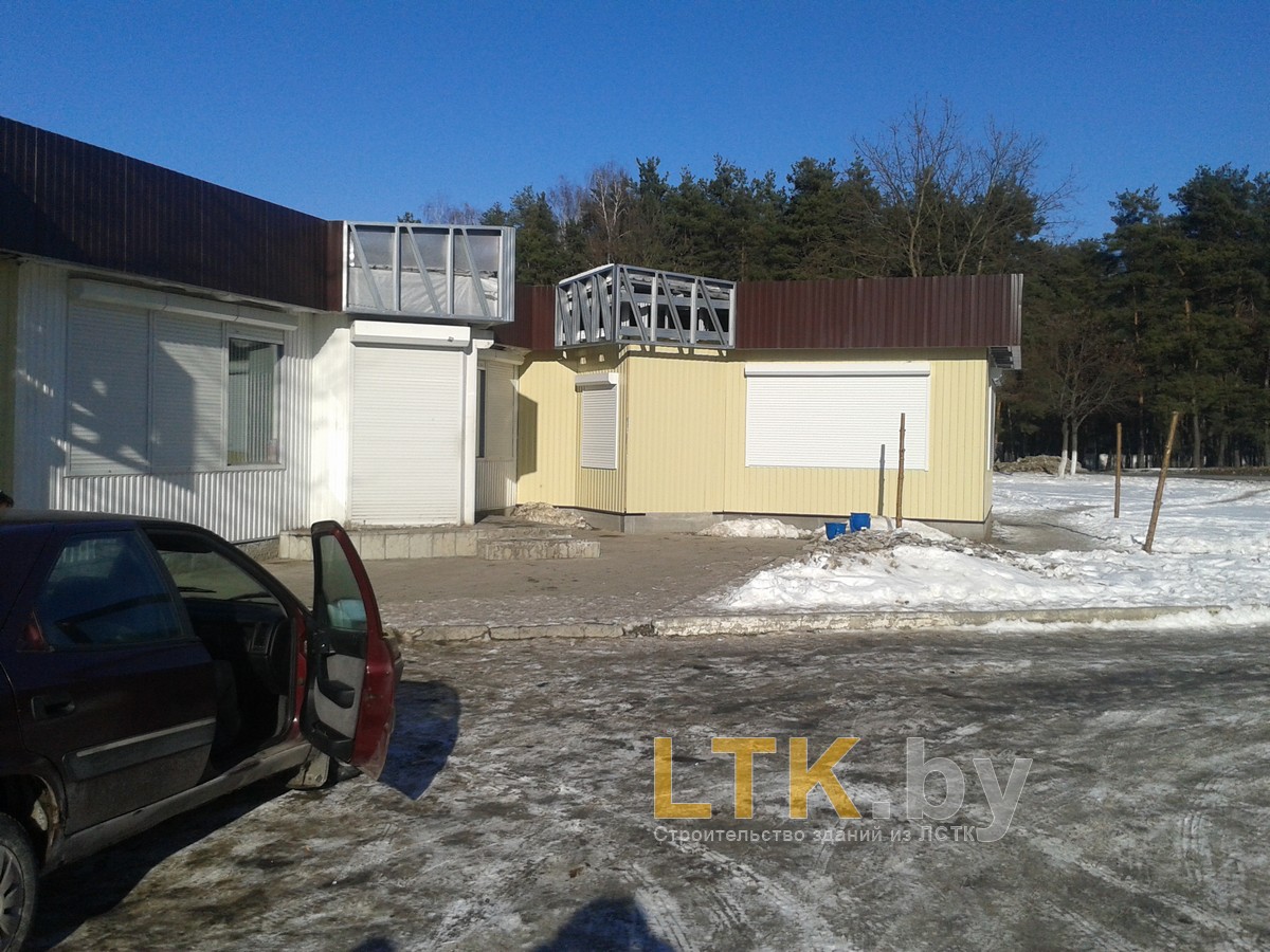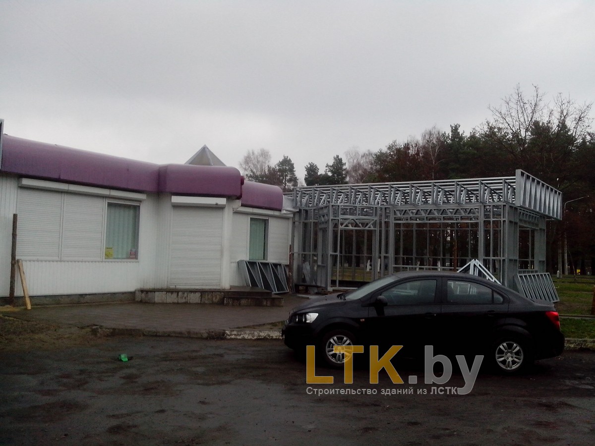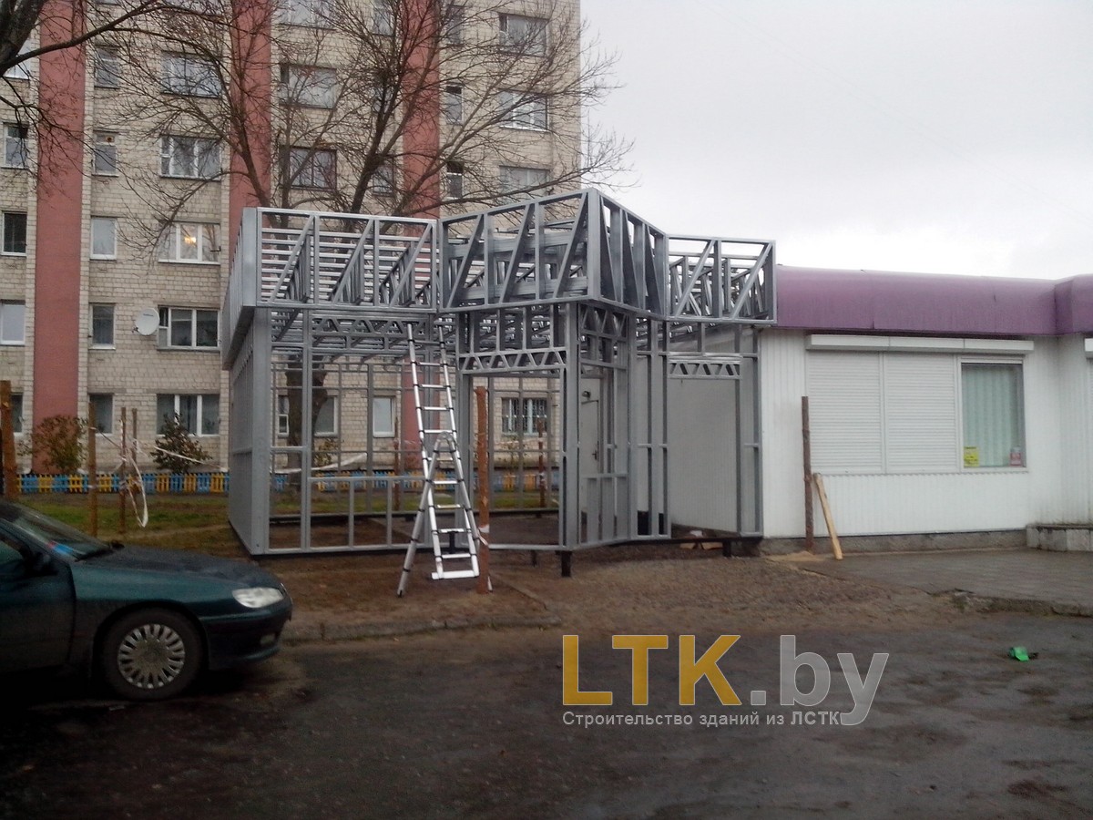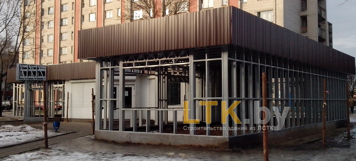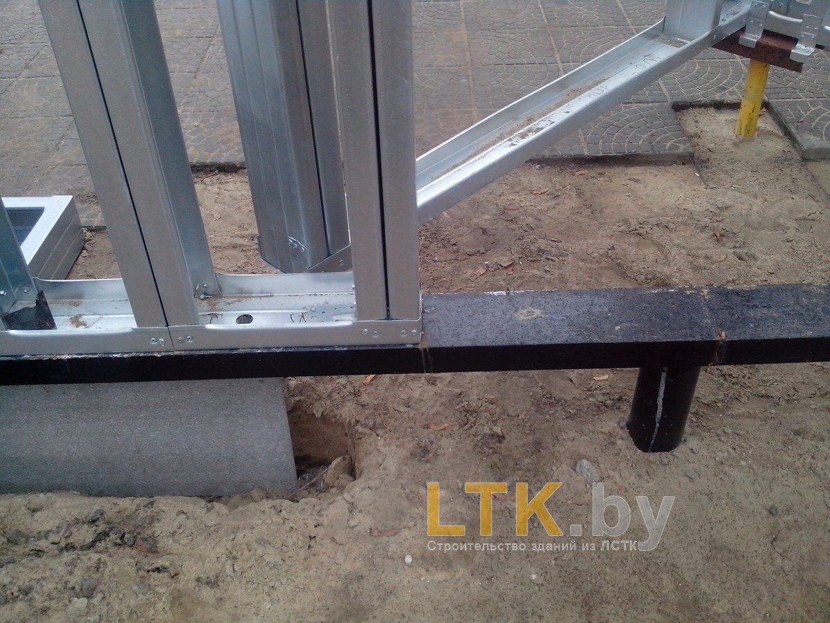 Фотоотчет о строительстве мини-магазина «777» из ЛСТК. В качестве фундамента используются винтовые сваи с обвязкой из стального швеллера.
