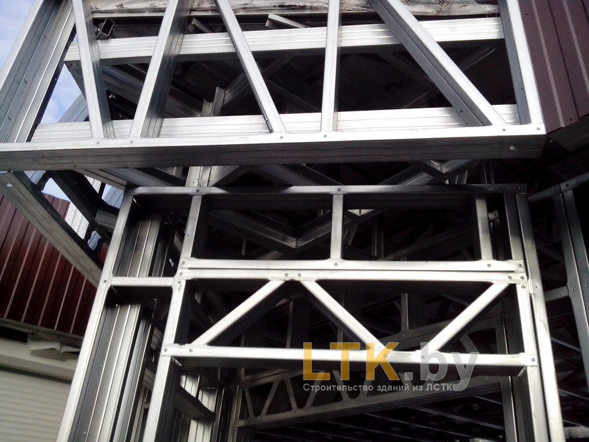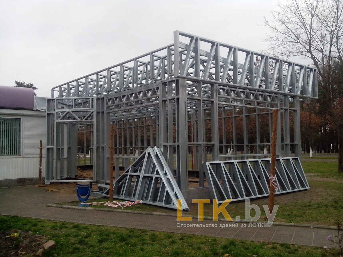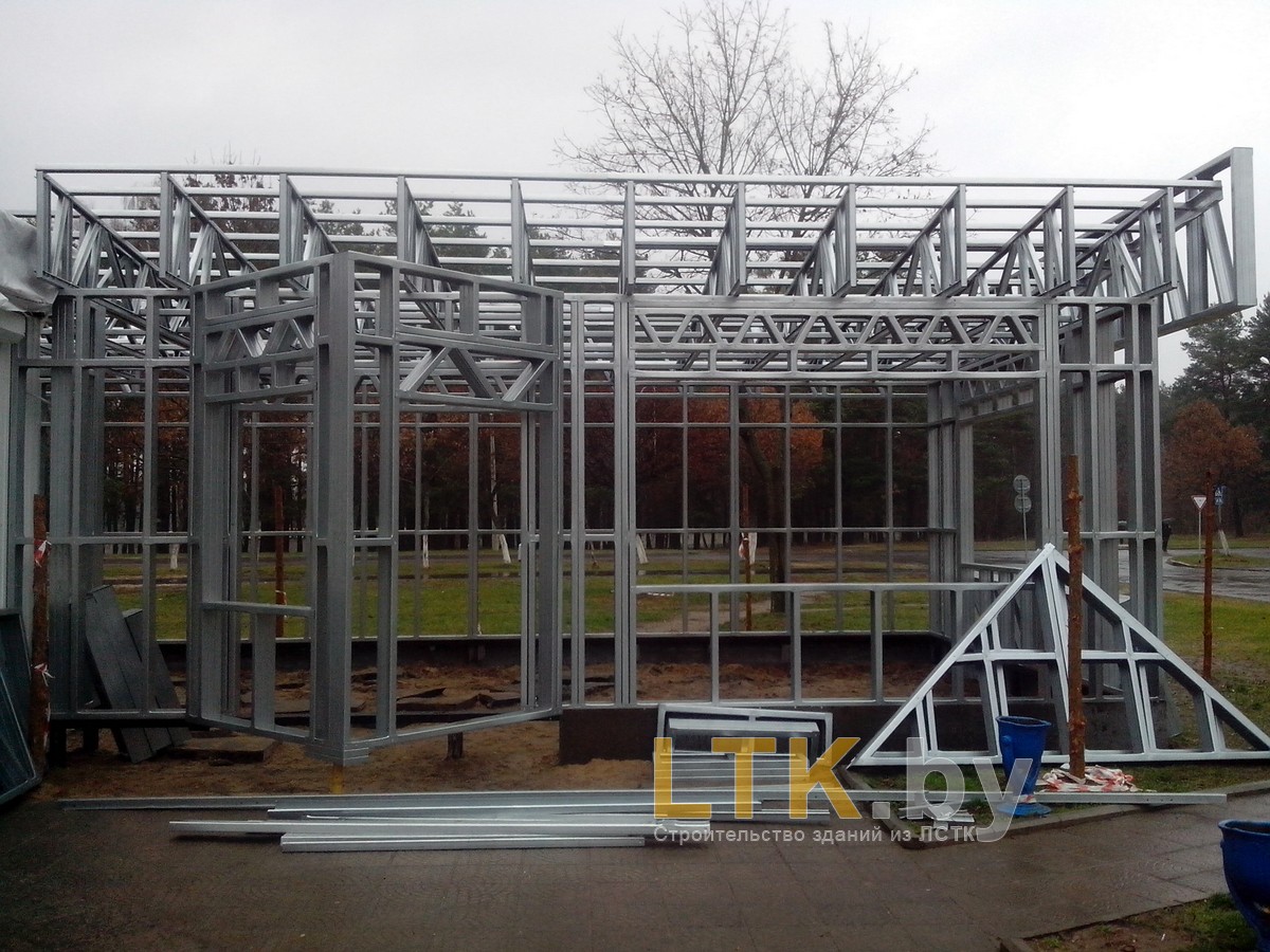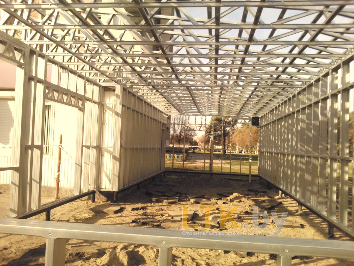 Фотоотчет о строительстве мини-магазина «777» из ЛСТК. В качестве фундамента используются винтовые сваи с обвязкой из стального швеллера.