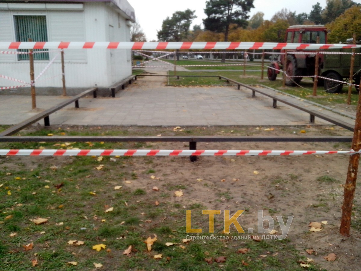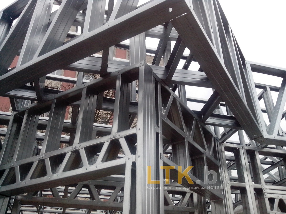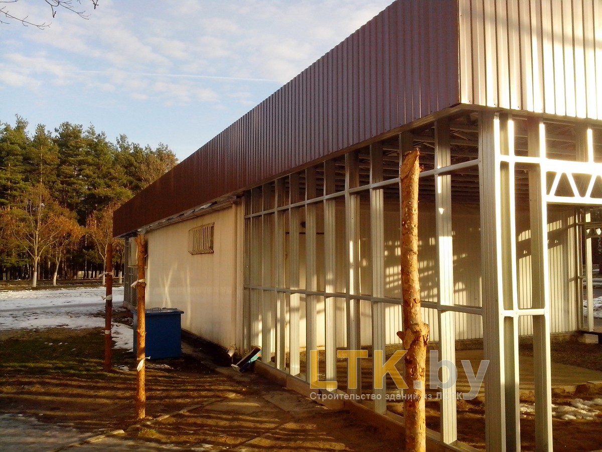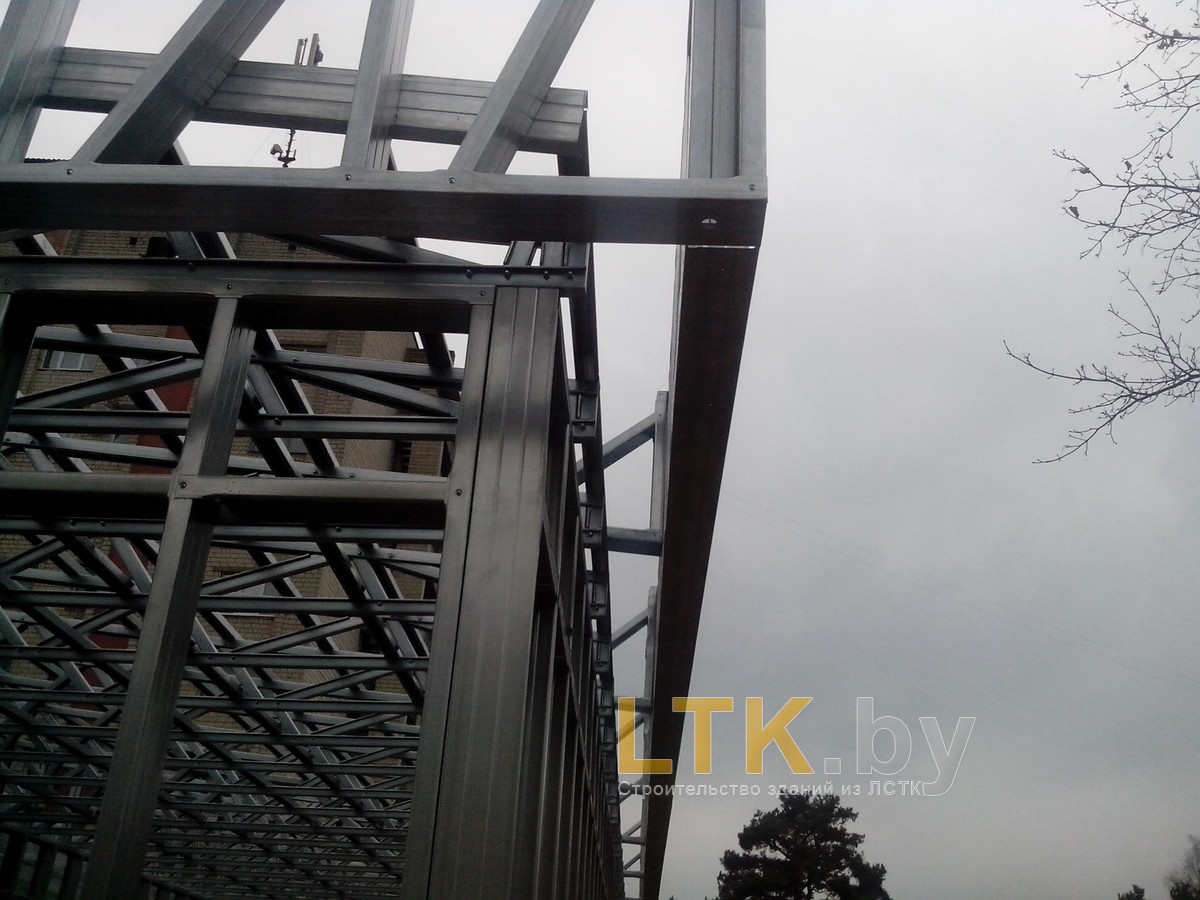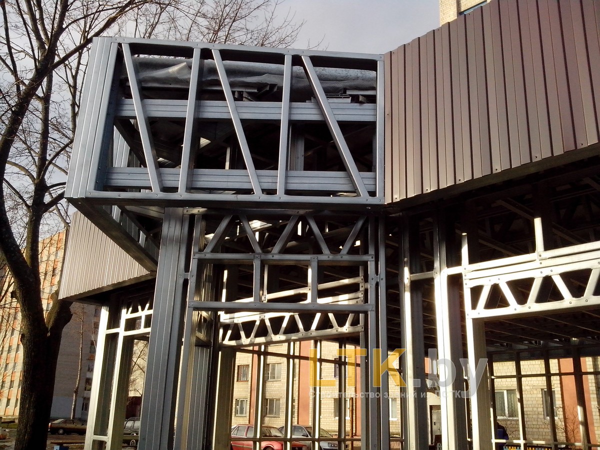 Фотоотчет о строительстве мини-магазина «777» из ЛСТК. В качестве фундамента используются винтовые сваи с обвязкой из стального швеллера.