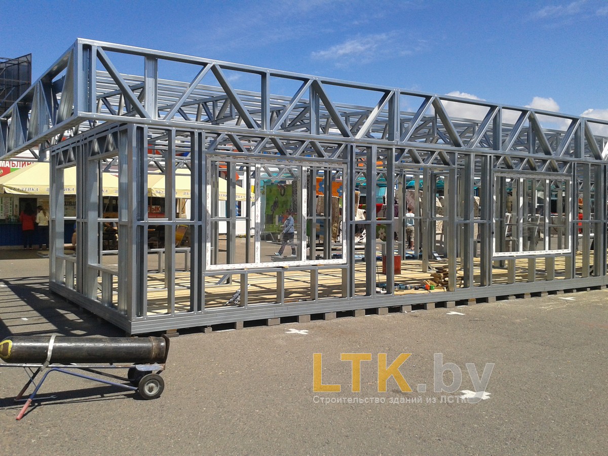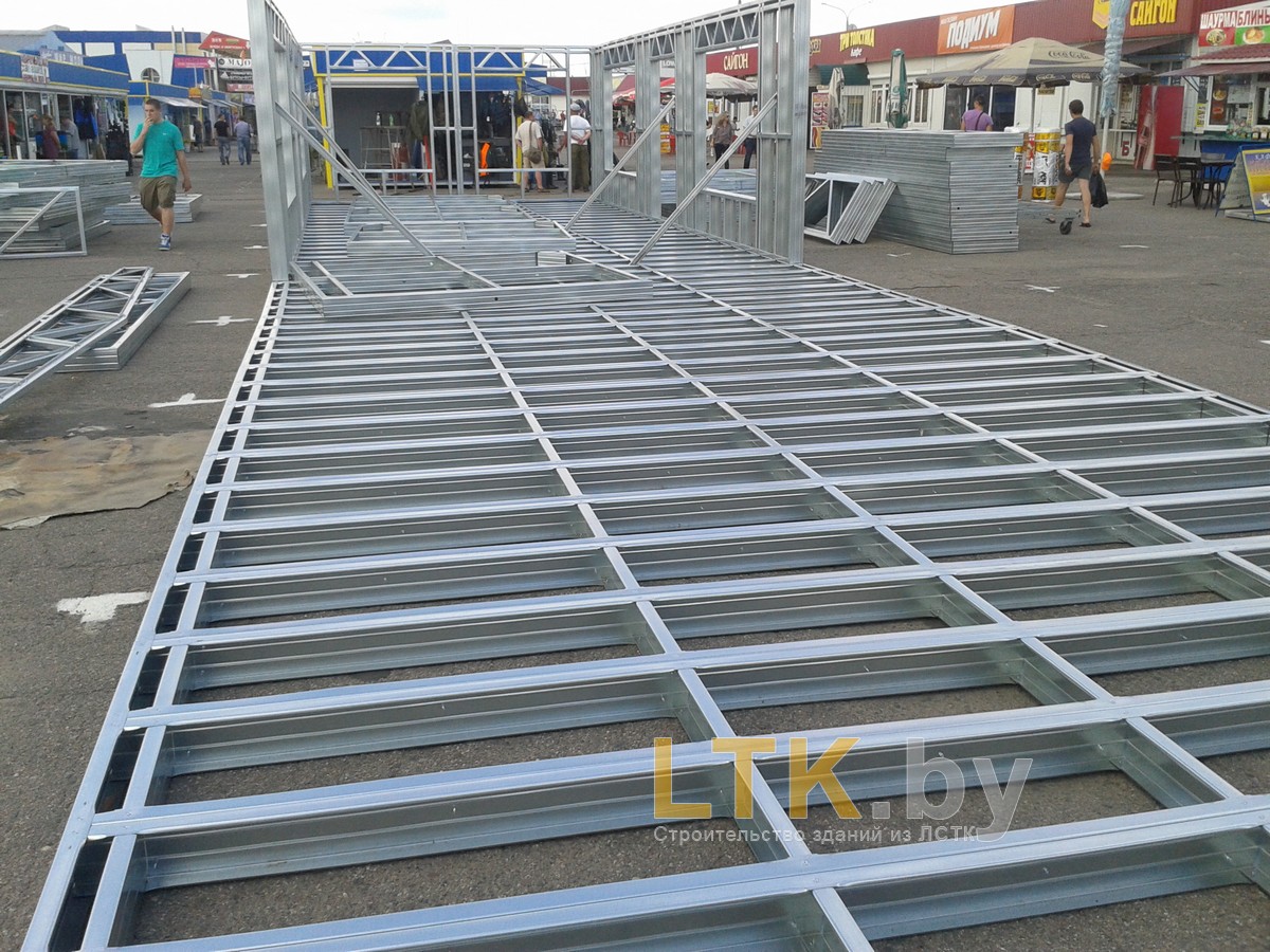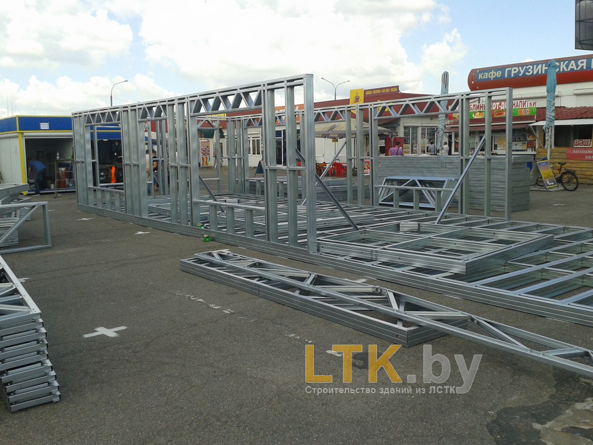 Было возведено 10 каркасных торговых павильонов по 100 м2 каждый (5 x 20 м). Благодаря низкому весу каркасной конструкции здания устанавливались на асфальтированную площадку, фундамент не потребовался.